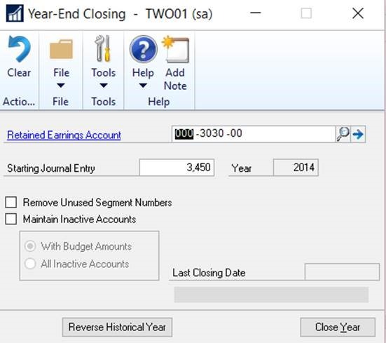 4. Reverse the historical year(s) – (Financial > Routines > Year-End Closing)